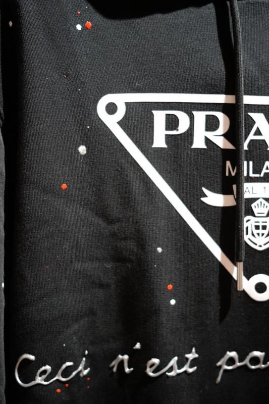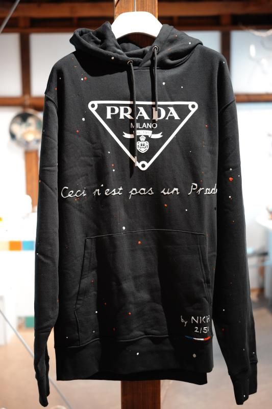 大量生産されるメゾンブランドへの風刺。キャンバスのように手描きの作品を創り、サインとシリアルナンバーが付けられている。